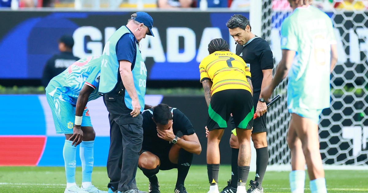El referí Tello salió lesionado sobre el final de Congo - Jamaica