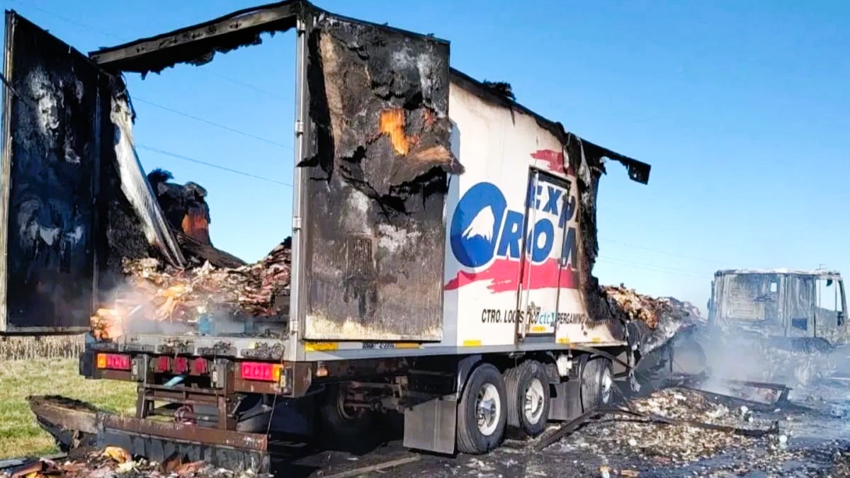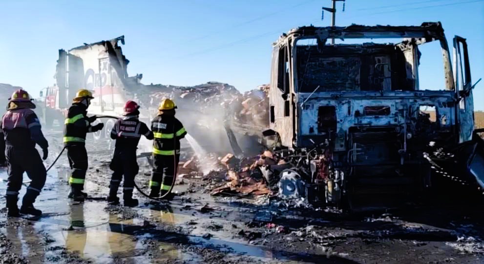 Tras el choque, el camión se incendió por completo, aunque su conductor logró salir ileso. Las causas que originaron el accidente se encuentran bajo investigación.